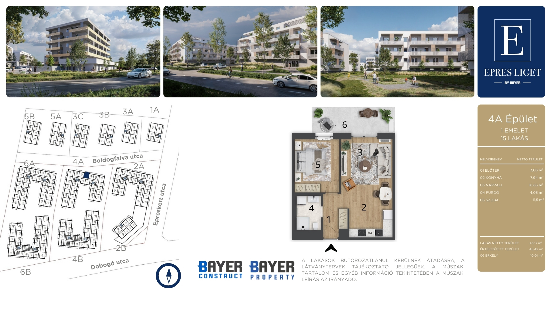 nappali + 1 szobás lakások 40-46 m2 alapterülettel,