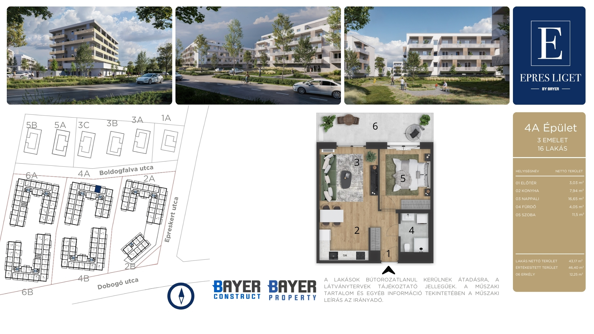 nappali + 1 szobás lakások 40-46 m2 alapterülettel,