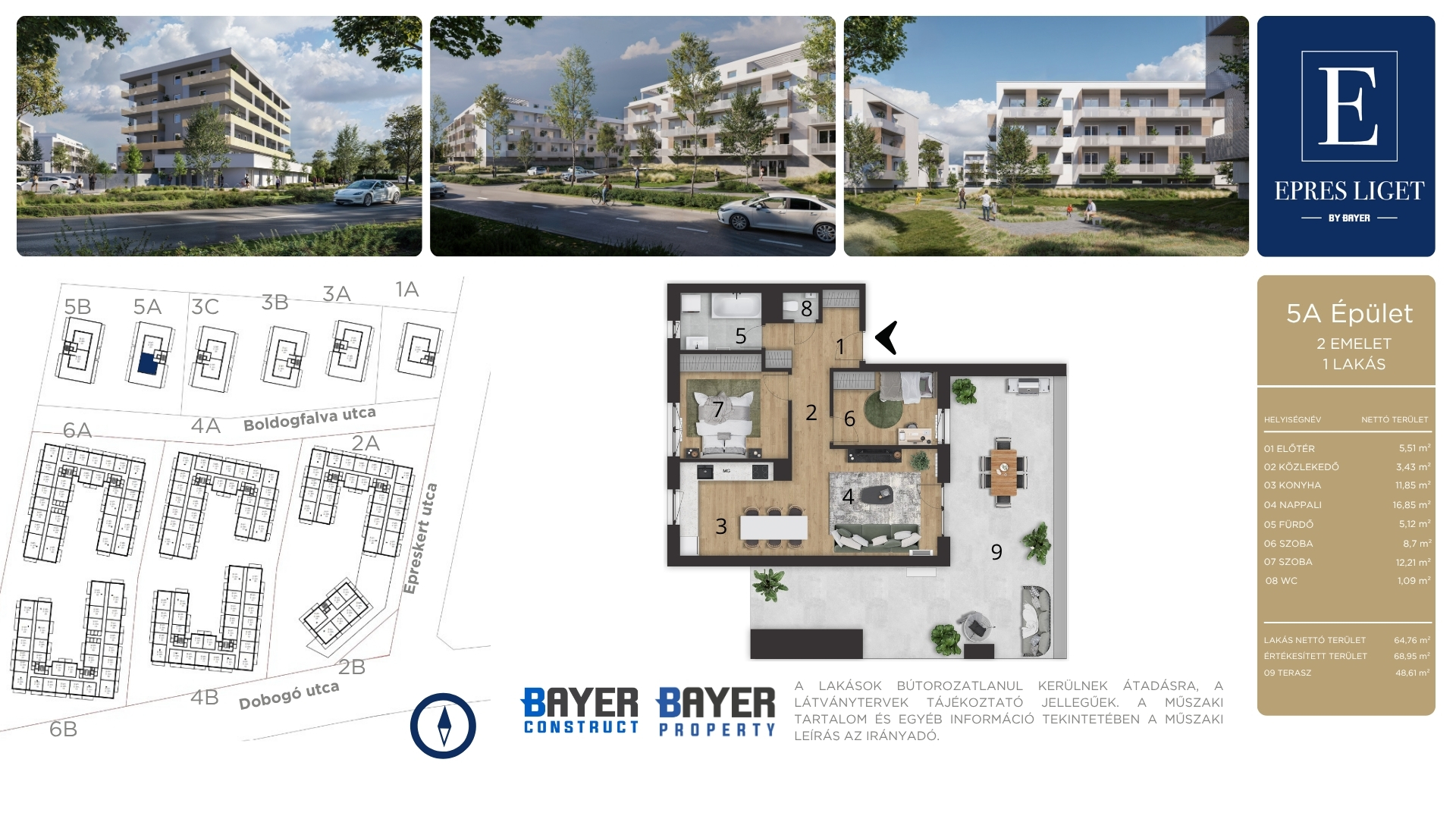 Mind a lakásokban, mind a közös helyiségek magas minőségű, modern megjelenéssel, burkolatválasztással készülnek.